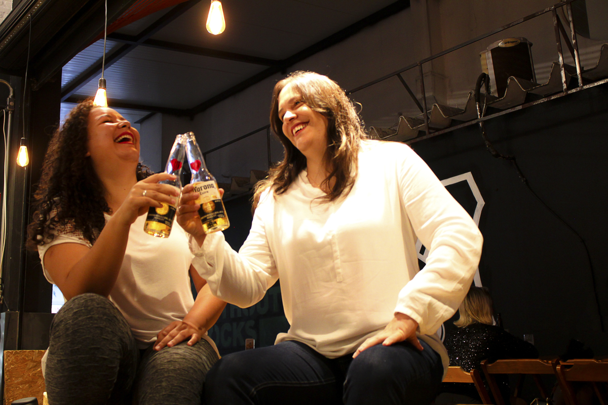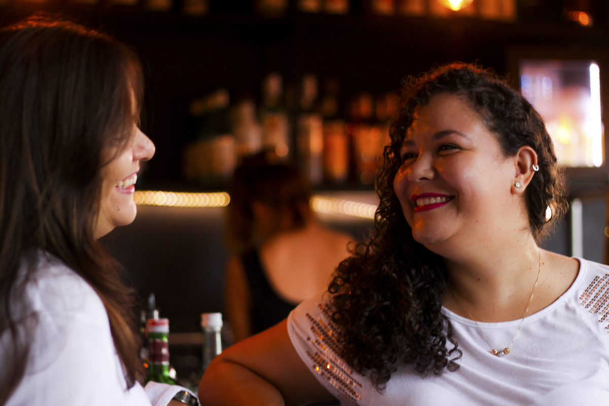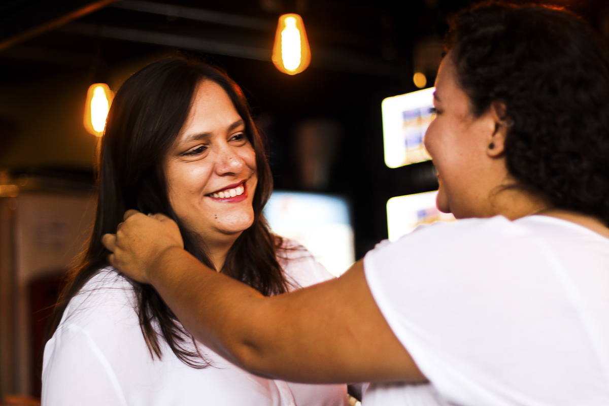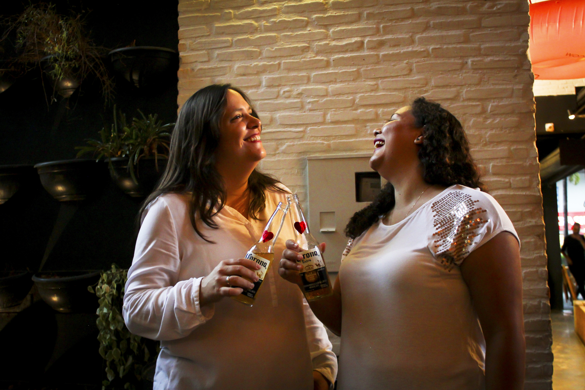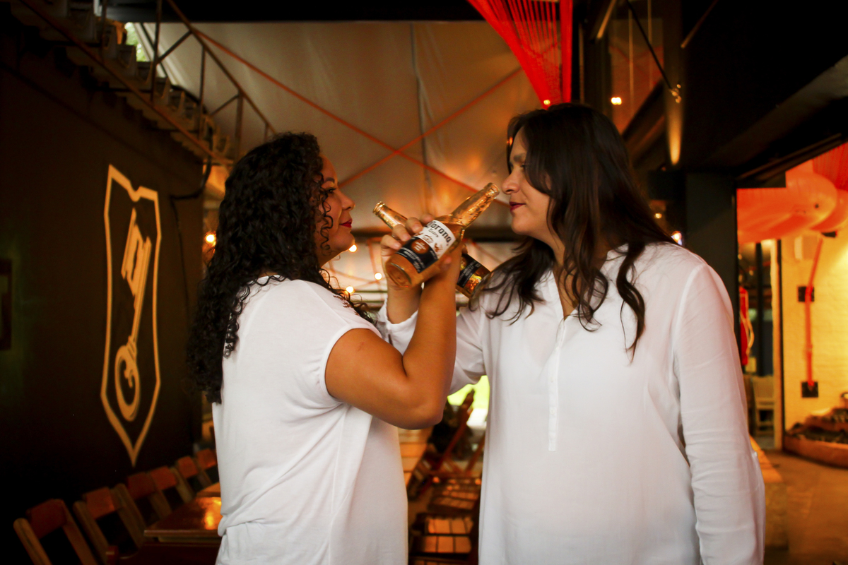 Como estava chovendo com muita frequência na época, precisávamos escolher um local coberto para a realização das fotos. Depois de conversarmos muito, chegamos a conclusão de que um barzinho aconchegante teria tudo a ver com elas e ficaria lindo. Escolhemos então o Muv Gastro Store, em Brasília - DF.
