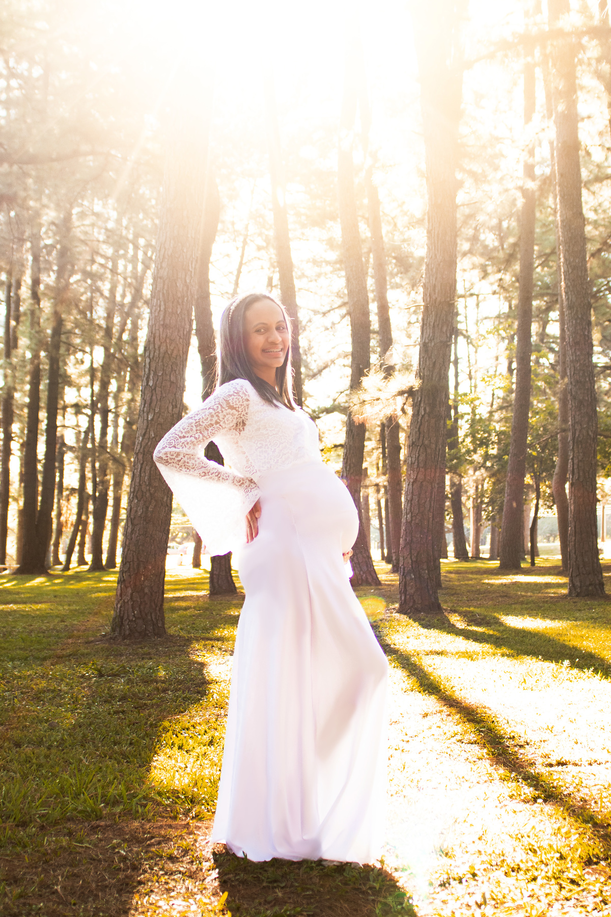 Escolhemos o Parque da Cidade como cenário e ela escolheu o nosso conjunto branco como figurino para a sessão de fotos.